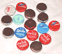 Bottle-tops: Yes, in the spirit of keeping it originally Zimbabwean, we are happy to present out Zimbabwe bottle-tops ¯ yes, Coca-Cola, Fanta, Lion Larger, Castle Lager, Black Label, Schweppes Sparkling Lemon, Sprite and Crème Soda. Bottle-tops, a replacement for snail-shells make an integral part of the mbira sound. Today, many mbira makers affix to the mbira a metal plate upon which a number of bottle tops are attached. These bottle-tops vibrate uniquely in sympathy with each of the the keys on the instrument thereby providing a percussive element to the music. Resonator gourds, be they calabash or fiber-glass, are also adorned with bottle-tops to produce the same effect. Bottle-tops are sold as a basket of 20 bottle-tops. For more information e-mail solomon.murungu@zambuko.com. Unfortunately no special brand requests, we provide a random sampling of these bottle-tops. |
